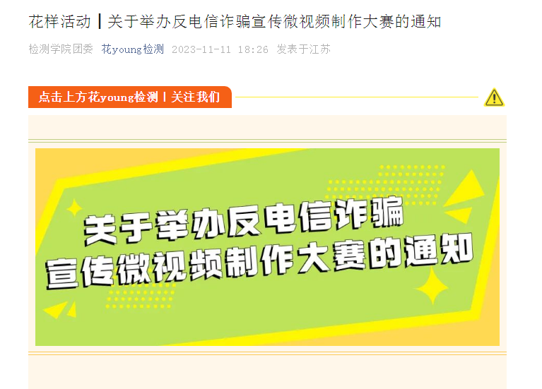 开展“反电信诈骗”主题微视频制作大赛活动。为深化同学们安全教育学习成效,组织各班级积极参与“反电信诈骗”主题微视频制作,引导各班级同学广泛参与,在组织班级同学演绎典型案例的过程中深化安全教育的学习。遴选出优秀的作品将通过304永利官微等方式进行宣传,发挥同学们的力量共同筑牢安全教育防线。