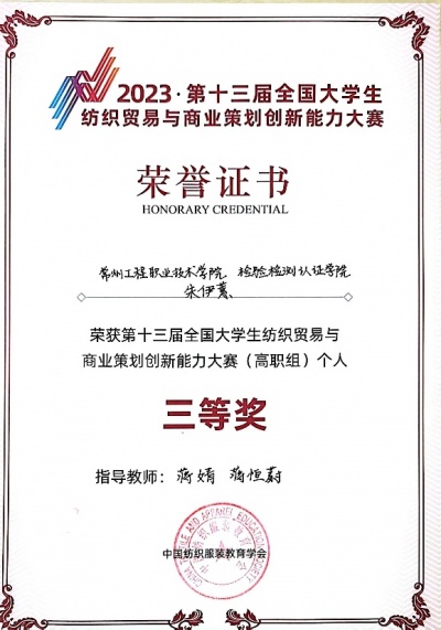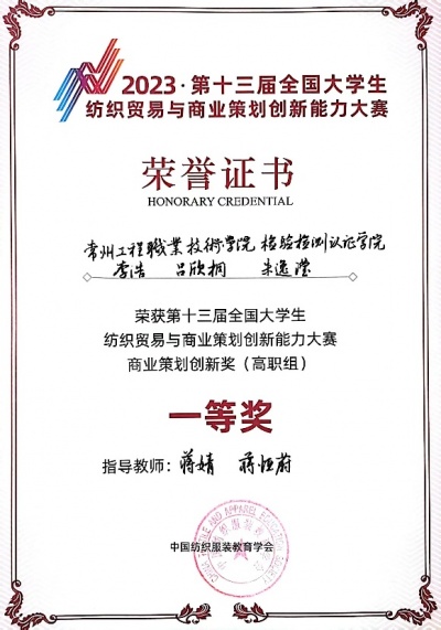 本次大赛由中国纺织服装教育学会主办,东华大学与上海远恒专修学院承办,共有本科、专科56支代表队、168名选手入围决赛。304永利李浩、吕欣桐、朱逸滢团队获得商业策划创新奖(高职组)一等奖,朱伊蕙同学获得个人赛(高职组)三等奖。