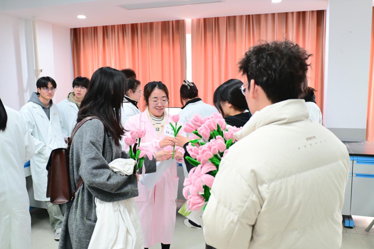 3月8日的“花暖人心,话语传情‘美·力’”活动,检测学子们亲手制作手工花束,将暖心话语写至贺卡上,亲手将花束和贺卡送给女老师和宿管阿姨们。美好的祝福独一无二,收到花束的女性们脸上的微笑,共同衬托出温馨祥和的节日氛围。
