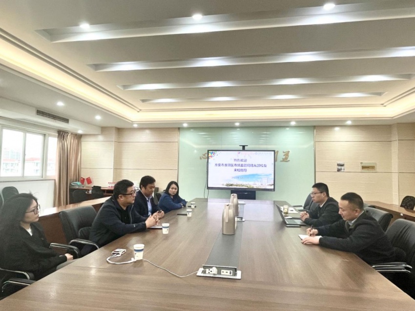 蒋文嵘对陆从凯一行的到来表示热烈欢迎,并简要介绍了学院在人才培养、队伍建设、产教融合等方面取得的成果。他表示,期待与广大员工携手奋进,共襄学院建设与发展,期望与地方部门深化合作,共同探索产教融合新模式。邓玉营重点介绍了学院产教融合特色工作,希望能够与淮安市淮阴区市场监督管理局在员工实习、就业以及教师实践、科研等方面展开合作。