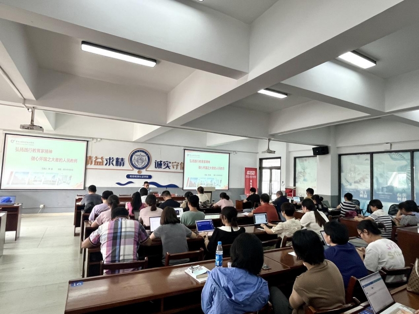 党委教师工作部、人事处、教师发展中心部长熊威受邀作题为“弘扬践行教育家精神 做心怀国之大者的人民教师”的专题报告。他从传统的师德观念出发,结合习近平总书记的尊师重教情怀,深入剖析教师队伍中的师德典范与师德失范行为典型案例,强调锤炼师德师风是每位教师的必修课程,并提出五条有效途径,以强化教师的师德养成,为打造高素质专业化教师队伍提供有力指导。
