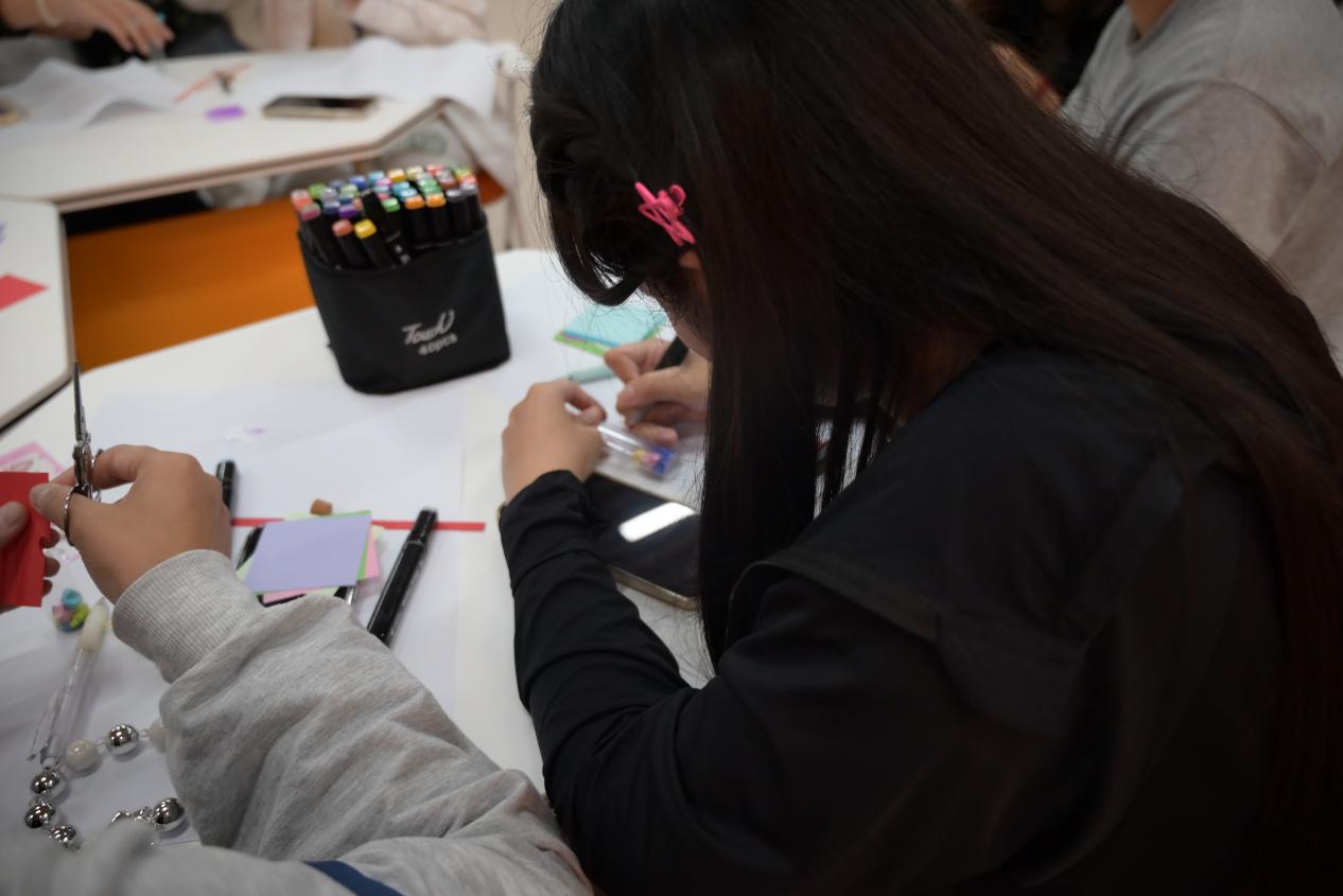 每位参与者都获得了一个透明的玻璃漂流瓶和丰富的装饰材料,包括彩带、彩色纸、贴纸、亮片以及丙烯马克笔等。大家纷纷发挥创意,将自己的漂流瓶装饰成独一无二的艺术品,每个漂流瓶都承载着参与者的个性和情感。