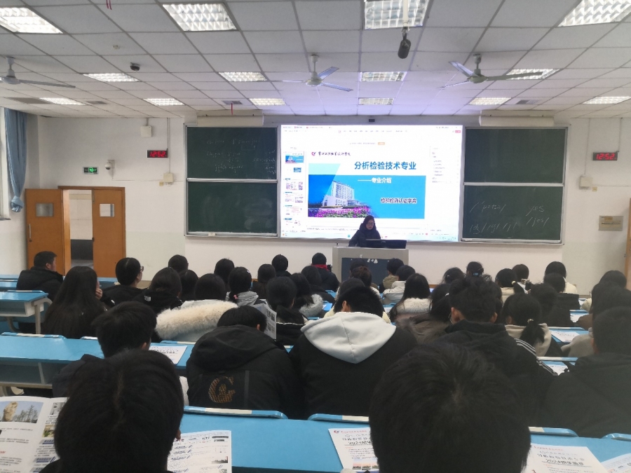 贺琼围绕分析检验技术专业概况、合作企业、学习内容、升学渠道、就业前景等内容,为参加本次交流的56名员工宣讲。员工参观实验实训室等场所,亲身感受校园环境和学习氛围。