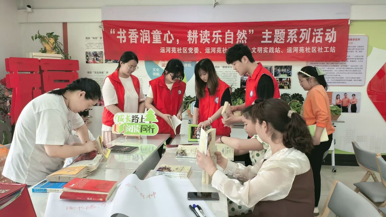 在运河苑社区的活动现场,志愿者们以“书香润童心,耕读乐自然”为主题,精心策划了亲子共读活动。他们通过引导家长与孩子共同阅读经典绘本,并运用生动活泼的语言和情景互动,帮助孩子们体验故事中的情感与智慧。活动特别设计了“亲子阅读技巧分享”环节,志愿者们根据儿童的认知特点,向家长传授了如何通过提问、角色扮演等方法激发孩子的阅读兴趣,从而助力构建一个和谐的亲子阅读环境。