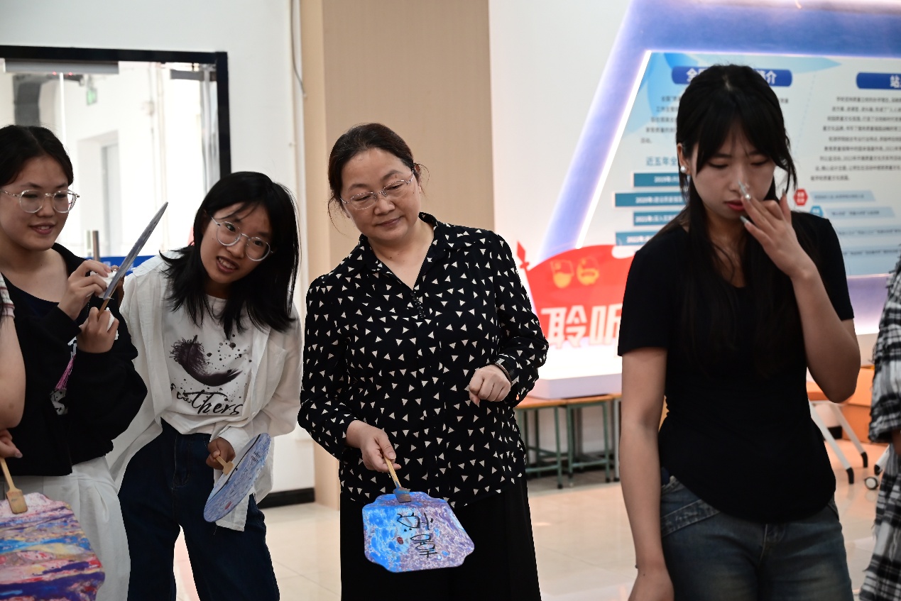 活动现场,来自回族、苗族等多个民族的同学与学院教师欢聚一堂,共同体验了传统大漆工艺的独特魅力。扇面上,端午节的吉祥安康寓意与各民族特色的精美纹样交相辉映,小小的漆扇成为了承载多元文化、联结民族情感的独特艺术纽带。叶爱英为在场师生带来了一堂别具一格的《党史中的端午节:常州红色记忆》微党课。她从端午节的历史渊源讲起,深入探讨了常州传统文化的深厚底蕴,并巧妙地将瞿秋白的家国情怀与端午节的爱国精神相融合,激励同学们继承红色基因,勇敢承担时代赋予的使命。统战部苏春菊老师在总结中高度赞扬了此次活动,认为这是学校深化“三全育人”、促进民族团结进步的一次生动实践,有效增强了各民族员工的文化认同感和归属感,营造了和谐共融的校园氛围。