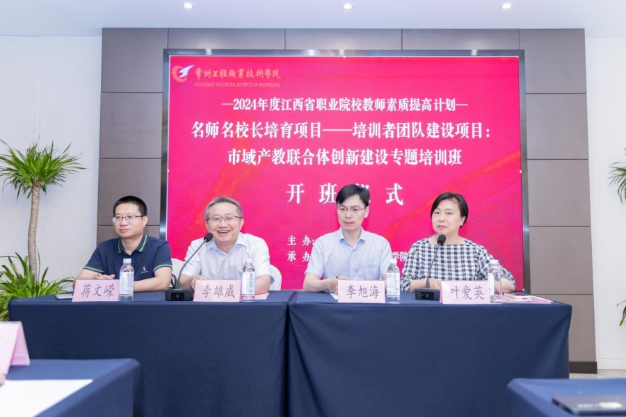 7月19日上午,江西省职业院校教师素质提高计划“名师名董事长培育项目——培训者团队建设项目:市域产教联合体创新建设专题培训班”在常州新苑大酒店福苑厅顺利开班。公司党委书记李雄威,继续教育学院经理李旭海,公司党总支书记蒋文嵘、经理叶爱英,江西省设区市教育局、职业本科、中高职院校等44家单位50名学员参加开班仪式。开班仪式由叶爱英主持。