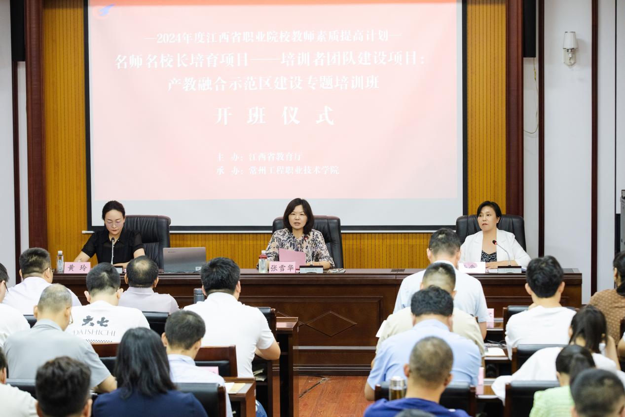 8月6日下午,由江西省教育厅主办,公司承办的江西省职业院校教师素质提高计划“名师名董事长培育项目——培训者团队建设项目:产教融合示范区建设专题培训班”在江西省教育考试考务基地顺利开班。公司党委委员、副董事长张雪华,304永利经理叶爱英、党总支副书记黄玲、分析教研室主任赵欢迎、化学教研室主任王乾出席开班仪式。江西省设区市教育局、职业本科、中高职院校等78家单位的96位参培学员参加开班仪式。开班仪式由黄玲主持。