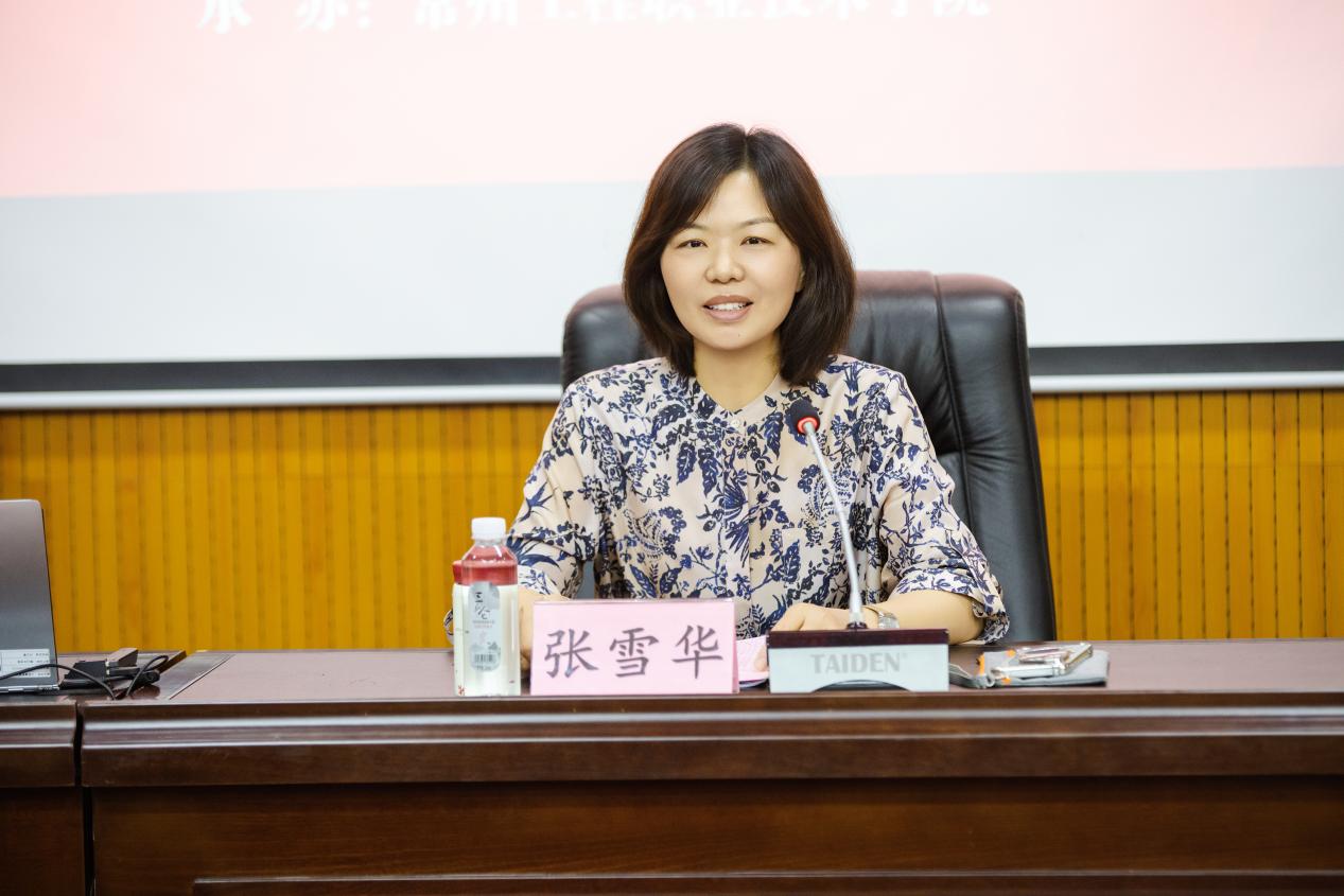 张雪华以深厚的历史渊源为纽带,紧密连接起两地之间的情谊。在致辞中对江西省教育厅给予的指导和信任表示感谢,向培训专家团队和参训教师的到来表示诚挚欢迎。她简要介绍了学校办学特色、办学成果,同时指出,完善的职业院校团队培养培训体系,是打造高质量现代职业教育体系的基础工程,构建高素质专业化教师队伍,是筑牢教育强国根基的重要举措。她表示,常州工程职业技术学院将基于“职教国培”的丰富积淀,充分发挥国家级职业教育“双师型”教师培训基地的平台作用,积极贡献前沿优质资源和专业团队力量,结合“多维联动、学用结合”的培训模式,以“诚心而来、匠心办班、同心共进”的办班理念,为参培教师创设高效完善、开放协同的培训体系。