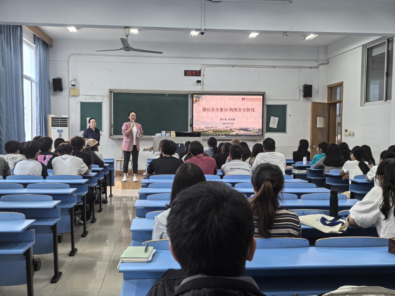 侯雪燕以《强化安全意识 构筑安全防线》为题,聚焦人身、财产、治安安全展开培训。人身安全方面,强调宿舍消防安全,严禁违规电器、私拉电线,结合交通数据提醒师生规范佩戴头盔、拒乘 “黑车”;财产安全环节,用真实案例解析刷单、游戏交易、网购等诈骗手段,传授防骗技巧;治安安全部分,围绕宿舍纠纷调解、盗窃预防及帮信罪、诽谤罪法律边界开展普法,强化师生法治意识。
