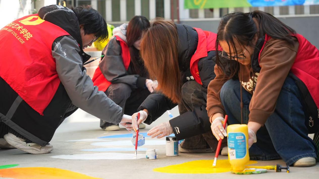 校社共建美 地绘焕新颜 ——304永利与设计学院组织员工赴运河苑社区开展国际志愿者日彩绘活动
