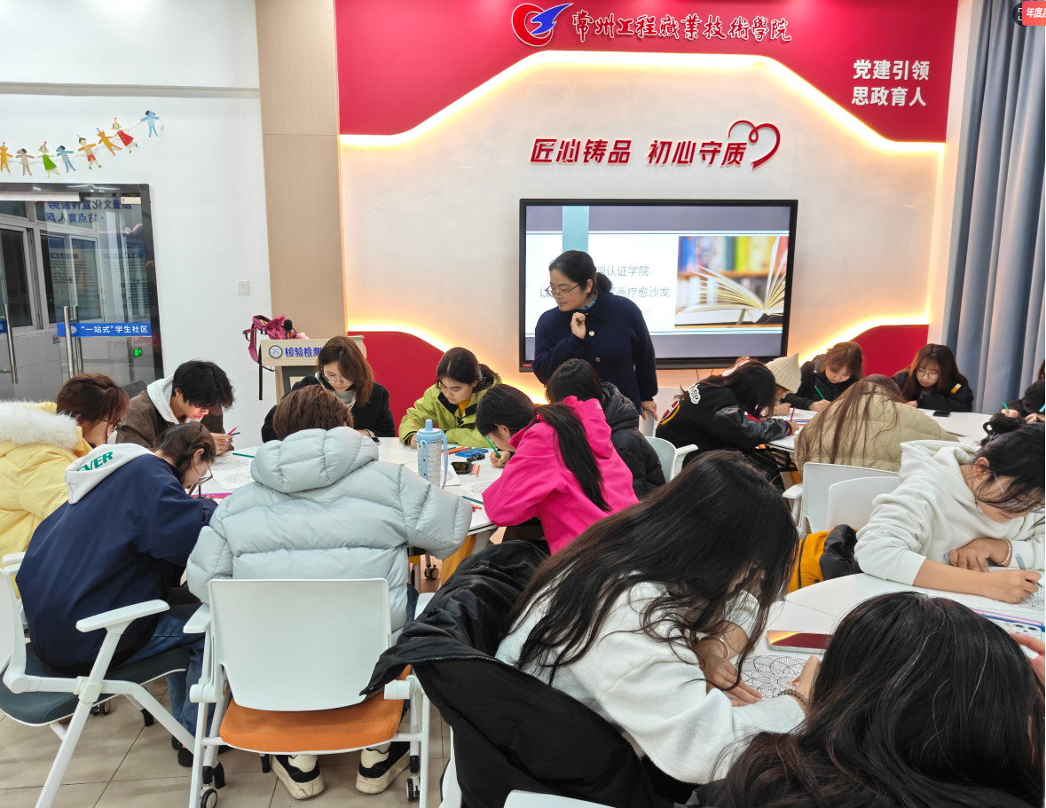 从选择颜色、绘制图案到最终完成作品,参与者全程沉浸在专注而平静的氛围中。活动的最后,凌月莲对同学们的积极参与和真诚分享表示感谢,并寄语大家将这份在绘画中获得的平静与专注带入日常学习生活,学会更好地与自己的情绪相处。