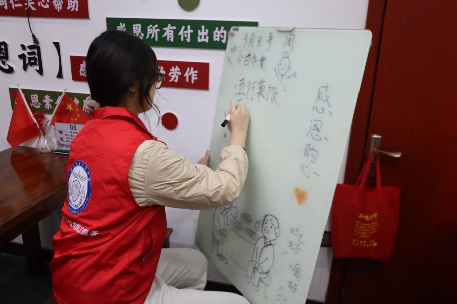 清晨,助餐点便已热闹起来。志愿者们虚心向经验丰富的老义工请教,洗菜、切菜、烹饪、分装,每一个环节都一丝不苟。年轻的身影穿梭在后厨与前厅之间,朝气蓬勃的气息为这个满溢温情的空间增添了更多活力。中午的午餐服务准时启动,当一份份温热的午餐送到老人手中时,老人们脸上洋溢的笑容,便是对志愿者们最好的回馈。环境2411的志愿者史雅婕感慨道:“以前对雷锋精神的理解多停留在书本上,今天亲手把饭菜送到老奶奶手里,听她道一声‘谢谢’,我才真正体会到‘帮助别人、快乐自己’的深刻含义。”