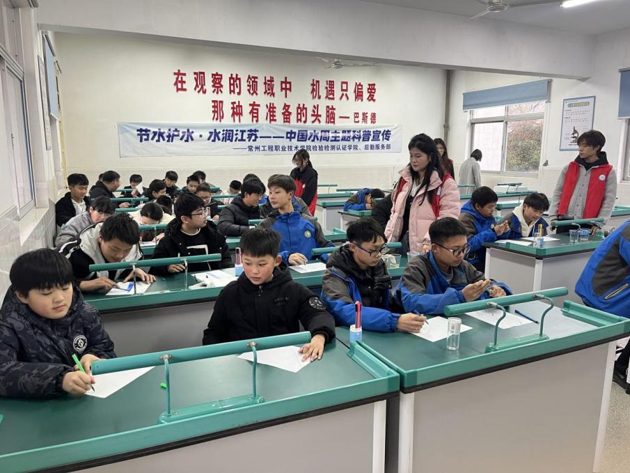值第三十九届“中国水周”之际,检验检测认证学院联合学校后勤服务部紧扣本届“国家水网 世纪画卷”的主题,充分发挥专业优势,组织五支科普小分队,分别前往无锡硕放实验小学、常州市武进区马杭中心小学、南夏墅初级中学、宜兴高等职业技术学院、江苏省江阴市祝塘中学等五所学校,开展系列科普宣传活动。